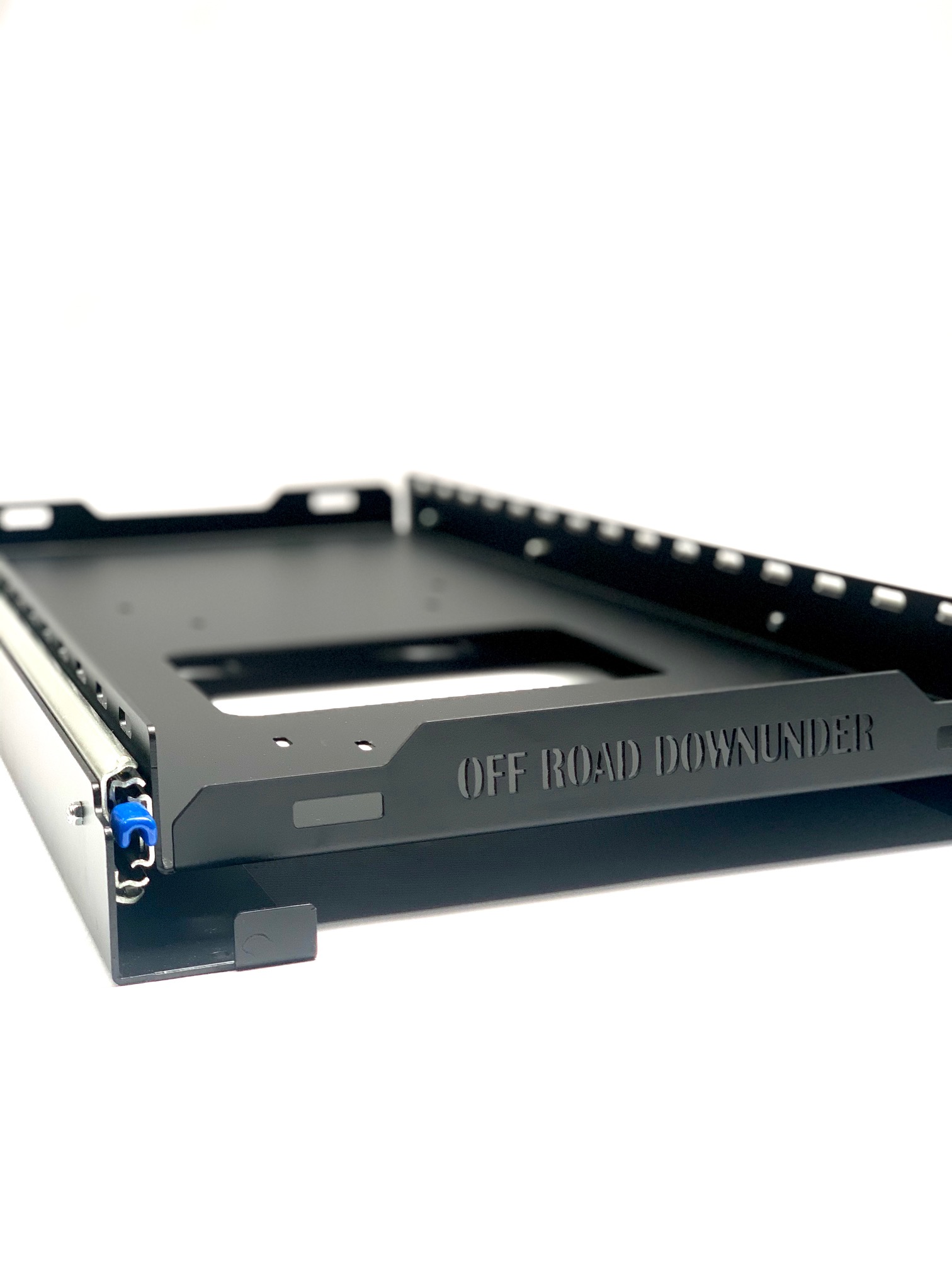- Durable full extension slides rated at 125kg with a twin locking lever system. (Also locks in the fully extended position to stop it rolling back in).